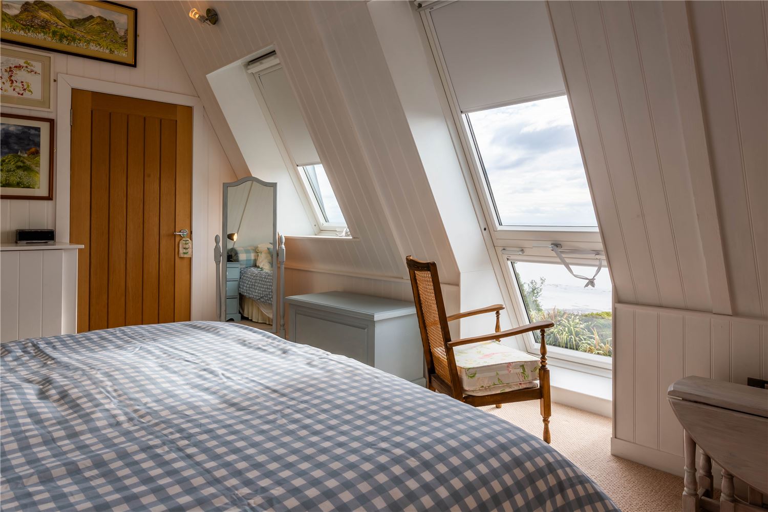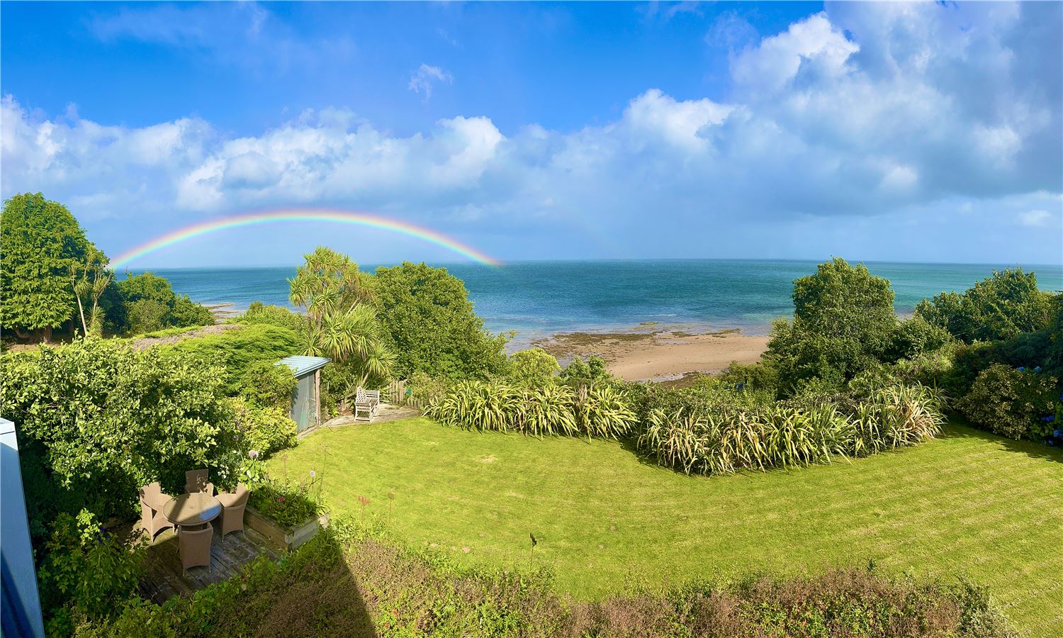 At the rear of the property, a raised deck extends from the living accommodation, providing breathtaking, panoramic views of the sea. This elevated space offers a serene vantage point to watch the ebb and flow of the tides, while the varied landscape of the gardens gives you countless other opportunities to pause and appreciate the natural beauty around you.