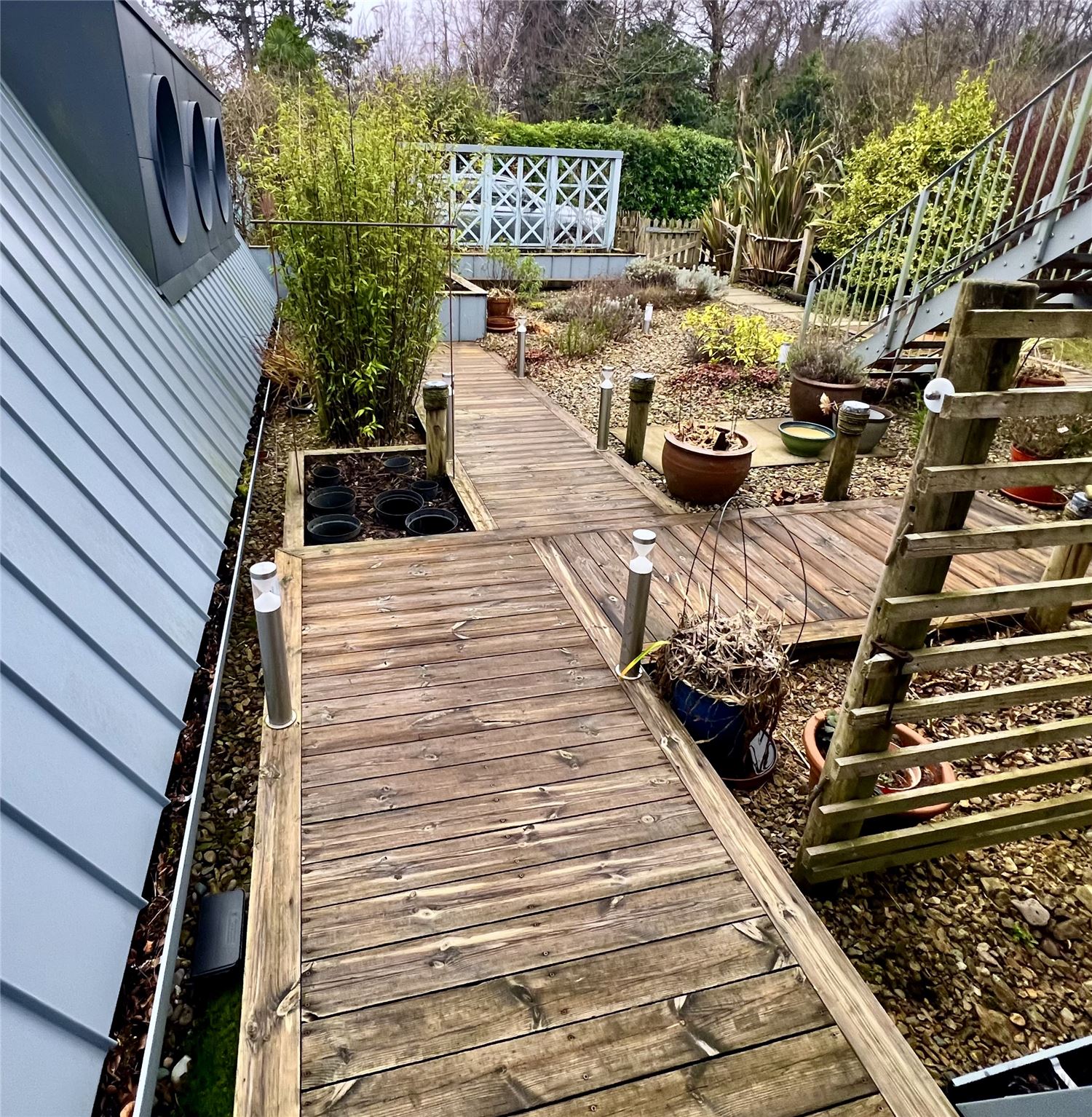 Cushions for outdoor chairs and sofas are stored in what we affectionately call “The Bus Shelter.”